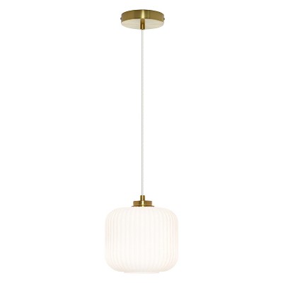 7.25" Nellie Retro Globe Shade Pendant Light White - River of Goods: Brushed Gold-Finish, Adjustable Height, UL Listed