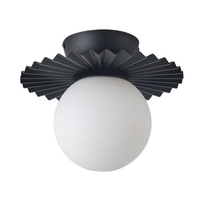 Modern Semi Flush Mount Ceiling Light, Matte Black Pleated Fan Design, Frosted Globe for Bedroom Hallway Entryway