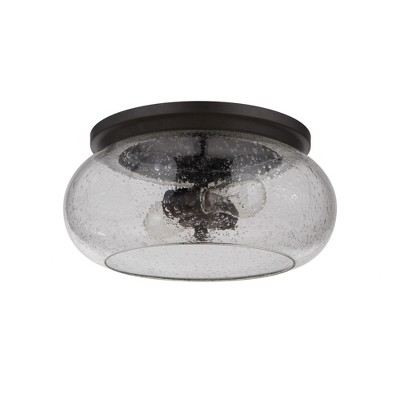 Franklin Iron Works Drake 12" Modern Industrial Flush-Mount Ceiling Light Fixture Kitchen Foyer Hallway Round 2-Light Black Seeded Glass Bedroom