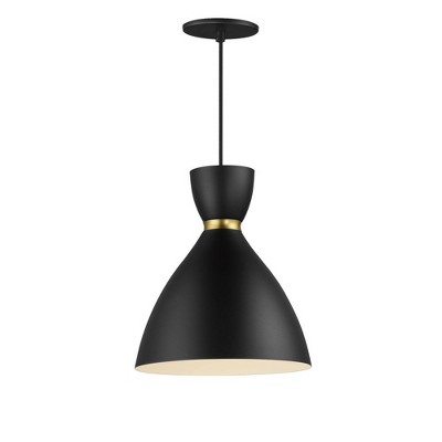 Possini Euro Design Piaza 12 1/4" Mid Century Modern Pendant Ceiling Light Fixture Dining Room Over Table Kitchen Island Hanging Black Gold Finish