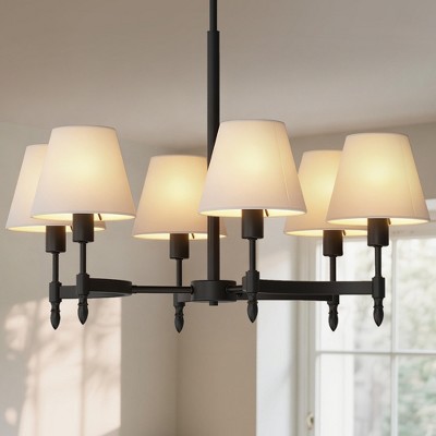 DORESshop 27 . 6-Light Black White Len Shade Farmhouse Chandelier, Elegant Rustic Pendant Light for Dg Room and Kitchen