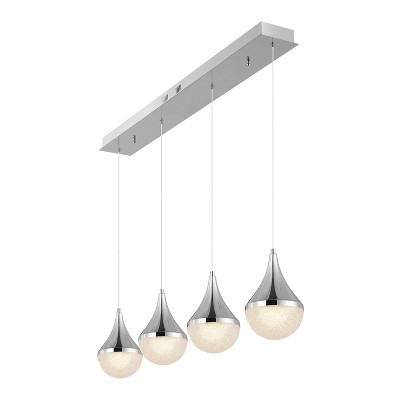 47" 4-Light Elena Teardrop Modern Mid-Century Iron/Acrylic Linear LED Pendant Chrome/White - JONATHAN Y: UL Listed, Adjustable Height