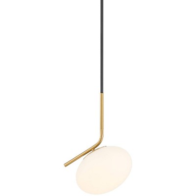 Possini Euro Design Black Soft Gold Mini Pendant 5 1/4" Wide Modern White Shade Fixture for Dining Room House Home Foyer Kitchen