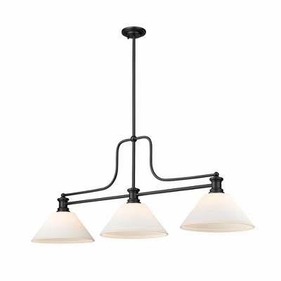 Melange 3-Light Billiards Light - Matte Black Steel & Opal Glass - 52" Industrial Design