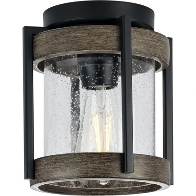 18.5W LED Integrated Matte White Outdoor Indoor Flush Mount Ceiling Light with Faux Wood Accent - Globe Electric: ETL Listed, Dimmable
