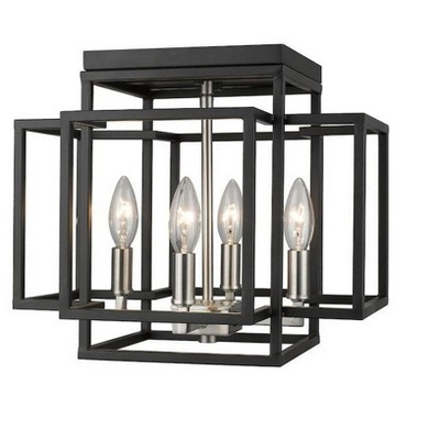 Titania 4-Light Flush Mount - Modern Steel Fixture in Black/Brushed Nickel, Dimmable, 14" Wide