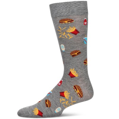 Memoi Men's Burgers & Fries Rayon From Bamboo Crew Socks Med Gray Heather 10-13