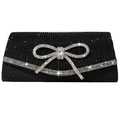 Anna-Kaci Black Lace Bow Keychain with Heart Clasp and Beaded Ribbon Details - Black