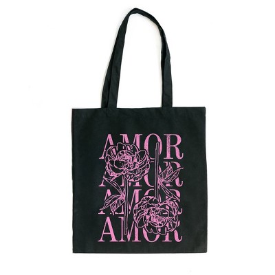 City Creek Prints Amor Floral Grunge Canvas Tote Bag - 15x16 - Black