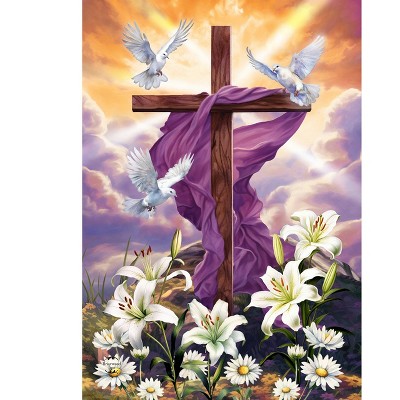 Briarwood Lane House Flag 40x28 For Outdoor Sunrise Easter Cross For Easter House Flag