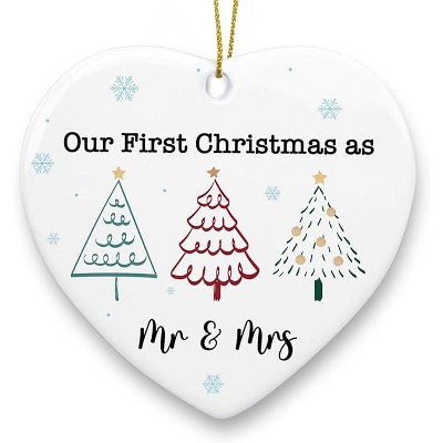 Lomsoe Our First Christmas as Mr Mrs Married Ornament Wedding Anniversary Couples Gift Wedding Christmas Heart Ceramic Xmas Tree Ornament Decor
