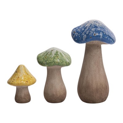 Transpac Ceramic 9.75 in Terracotta Mushroom Decor Set of 3 Spring Decorative Objects for Home and Garden