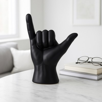 Decorative Stoneware Ceramic Hand Sculpture with Shaka Gesture Silhouette Contemporary Abstract Accent Art Figurine Modern Handcrafted Display Object