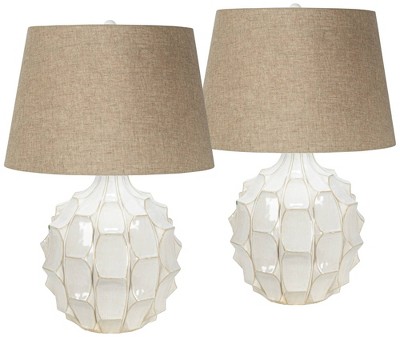 360 Lighting LED Modern Coastal Accent Table Lamps 24 1/2" High Set of 2 Scalloped White Ceramic Drum Shade for Bedroom Living Room Bedside Nightstand