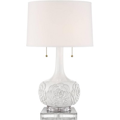 Possini Euro Design Natalia Modern Country Cottage Table Lamp with Square Riser 28 1/2" Tall White Floral Ceramic Drum Shade for Bedroom Living Room