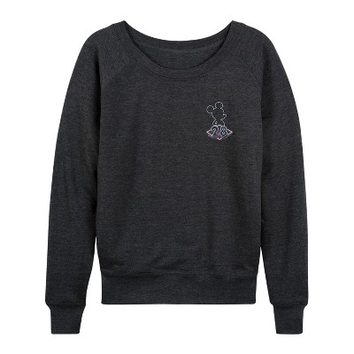 Women's - Disney - Mickey Mouse Lightweight French Terry Wide Neck Long Sleeve Graphic Shirt