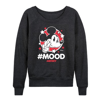 Women's - Disney - Mickey Mouse Sunglasses Lightweight French Terry Wide Neck Long Sleeve Graphic Shirt