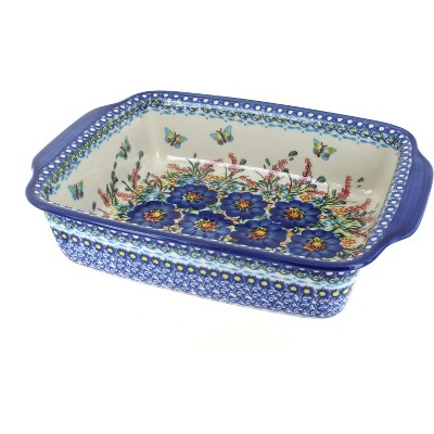 Blue Rose Polish Pottery 372 Zaklady Large Rectangular Baker