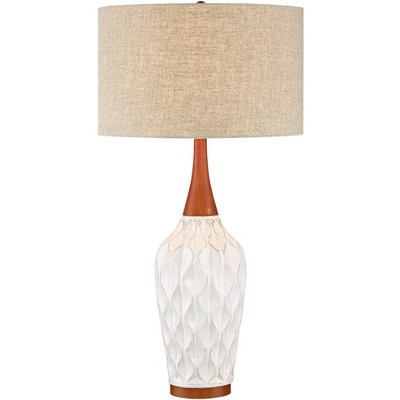 Possini Euro Design Natalia Modern Country Cottage Table Lamp 27" Tall White Ceramic Glaze Textured Floral Drum Shade for Bedroom Living Room Bedside