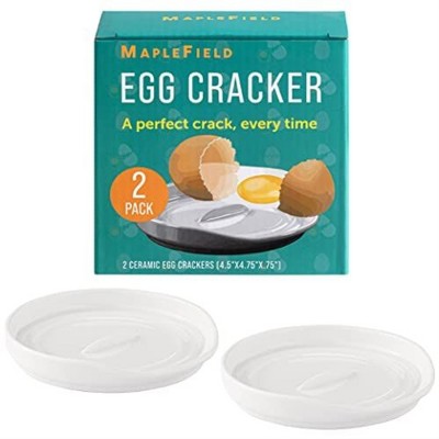 Maplefield [2 Pack] Dual Purpose Egg Cracker Tool & Spoon Rest for Kitchen Counter - Egg Breaker Tool - Ceramic Spoon Holder