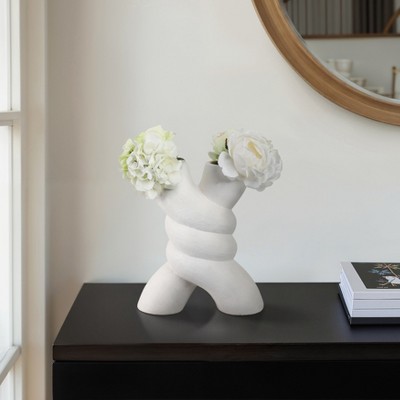 Modern Terracotta Vase - Twisted Design - Contemporary Home, Office, Bedroom & Living Room Decor -Centerpiece for Floral Arrangements - 14" White