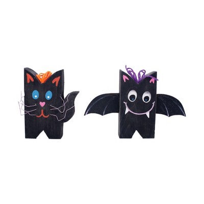 Gallerie II Bat & Cat Handcrafted Pinewood Halloween Indoor Figurines Set Of 2