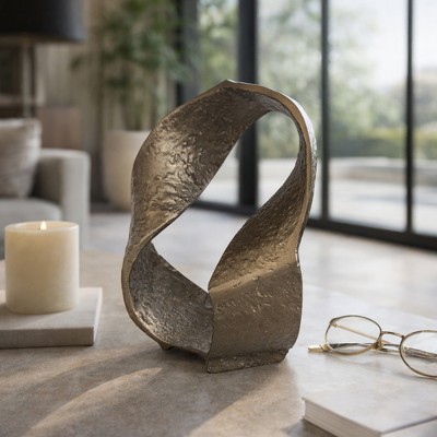 Abstract Ring Art Home Decor Sculpture Figurine - Modern Table Accent for Coffee Table and Room Display - 20", Gold & Metallic
