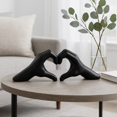 Itopfox Small Heart Hands Sculpture 1 Piece Gold Resin Modern Decor 4.92 x 1.37 x 2.75 Inch for Living Room Bedroom Office Table Gift