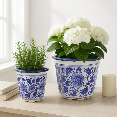 - blue ceramic planter