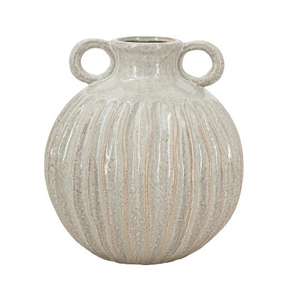HomeRoots 10" Sage And Gray Round With Handles Ceramic Table Vase
