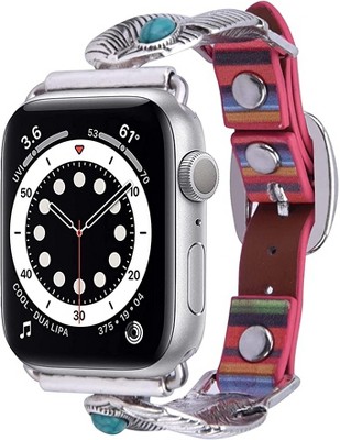 Worryfree Gadgets Leather & Metal Band for Apple Watch 38/40/41mm, 42/44/45mm iWatch Band Series 8 7 6 SE 5 4 3 2 1