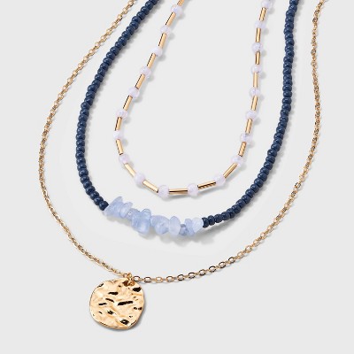 Beaded and Chain Necklace 3pc Set - Universal Thread™ Gold/Blue