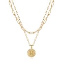 14K Gold Layered Necklace - Handmade Moon, Pearl & Coin Pendant Choker for Women