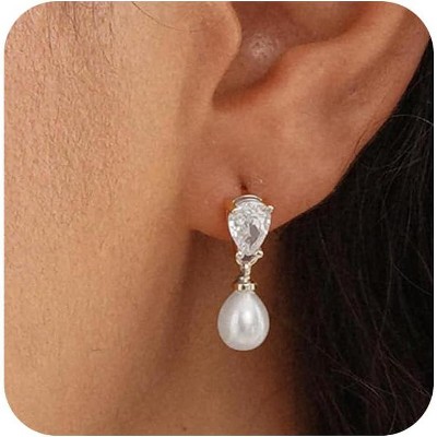 Pearl Earrings for Women Trendy, Dainty 14K Gold Plated CZ Pearl Drop Earrings Earring Wedding Prom
