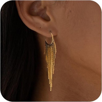Gold Dangle Earrings for Women Dainty Long Tassel Drop Earrings Trendy, Hypoallergenic