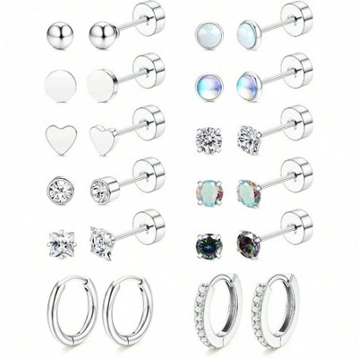 10-Pair Small CZ Stud Earrings - Diamond-Like Shine, Hypoallergenic Surgical Steel for Sensitive Ears & Multiple Piercings