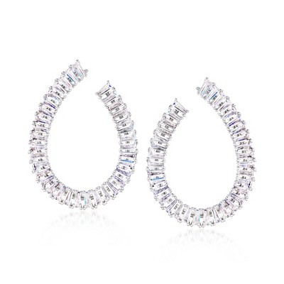 Bella Silver Sterling Silver, 15.5mm Prong-CZ Huggie Hoop Earrings - Silver