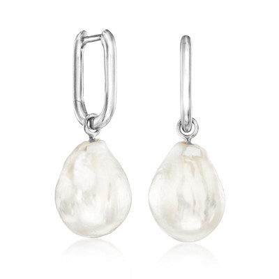 Ross-Simons 0.50 ct. t.w. Pave Diamond Heart Hoop Drop Earrings in Sterling Silver
