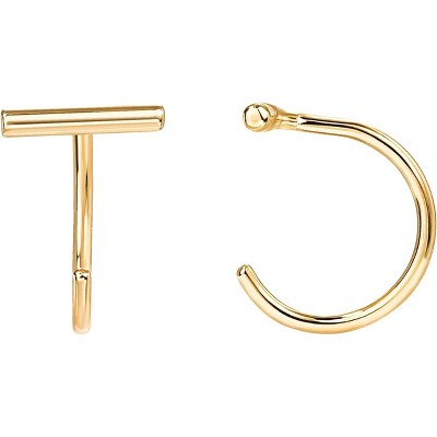 Bella Silver Sterling Silver Vertical Bar CZ Charm Huggie Hoop Earrings - Gold Plated - Gold