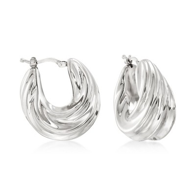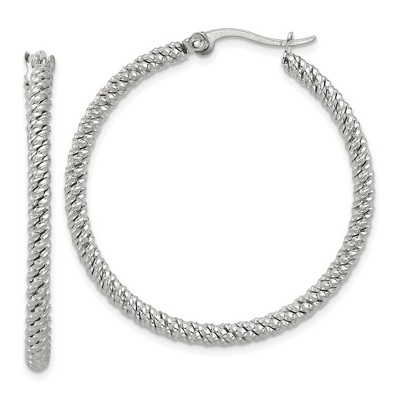Black Bow Jewelry 14k White Gold Polished & Satin Twisted Round Hoop Earrings, 32mm