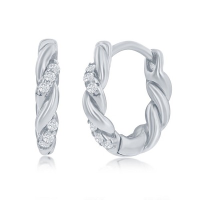 Bella Silver Sterling Silver 3x30mm Fancy Flat Hoop Earrings - Rhodium Plated - Silver