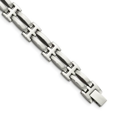 Black Bow Jewelry Men's 13mm Polished Stainless Steel Fancy Link Bracelet, 8.5 Inch