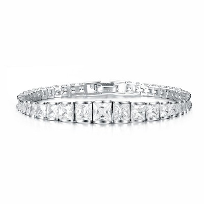Guili Sterling Silver Rhodium Plated Clear Cubic Zirconia Tennis Bracelet, Dazzling and Sophisticated Design for a Timeless Appeal