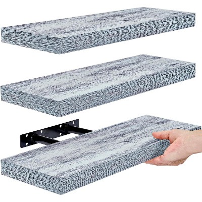 23.6" Gray Floating Shelf ¨C invisible-bracket wood wall mount, perfect bathroom/bedroom/kitchen d¨¦cor or book/plant display, easy install.