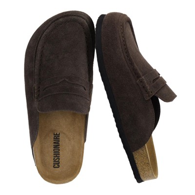 CUSHIONAIRE Fondu Genuine Leather Mule Clogs for Women, Comfortable Slip On Womens Shoes with Penny Strap Accent and Memory Foam Footbed