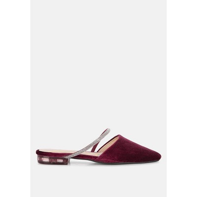 Turnon Velvet Diamante Detail Flat Mules