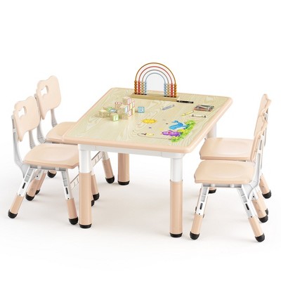 Toddler Table and 4 Chairs Set, Height Adjustable Multi-Activity Table with Graffiti Desktop, Easy Wipe Clean, for Classroom, Daycare