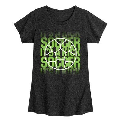 Girls' - Instant Message - Soccer, It's A Kick- Youth Girls Fitted Short Sleeve T-Shirt Fitted Short Sleeve Graphic T-Shirt