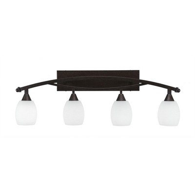 Toltec Lighting Bow 4 - Light Vanity in Bronze with 5" White Linen Shade