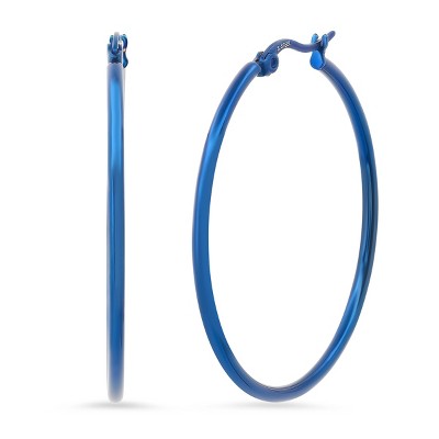 Steeltime Ladies blue ip stainless steel hoop earrings